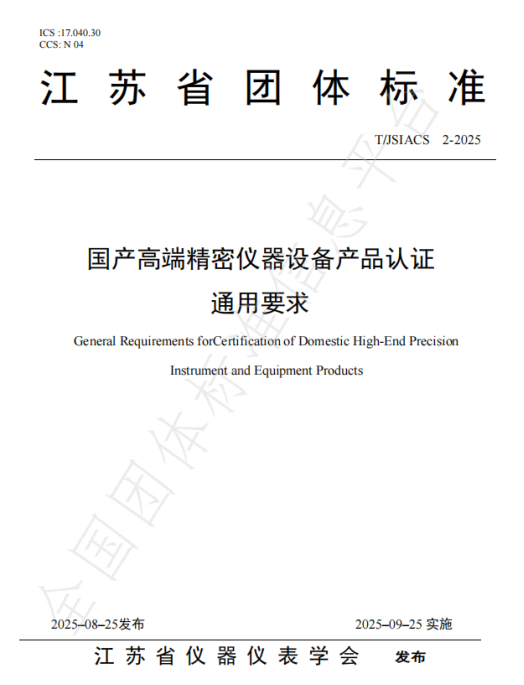 近日,江蘇省儀器儀表學會正式批準發(fā)布團體標準《國產高端精密儀器設備產品認證通用要求》(標準編號:T/JSIACS 2 - 2025)。該標準嚴格依據《江蘇省儀器儀表學會標準管理辦法(試行)》制定,圍繞國產高端精密儀器設備產品認證,在基本要求、國產化要求、品質屬性等關鍵維度作出明確規(guī)范,適用于國產高端精密儀器設備產品的通用認證場景。